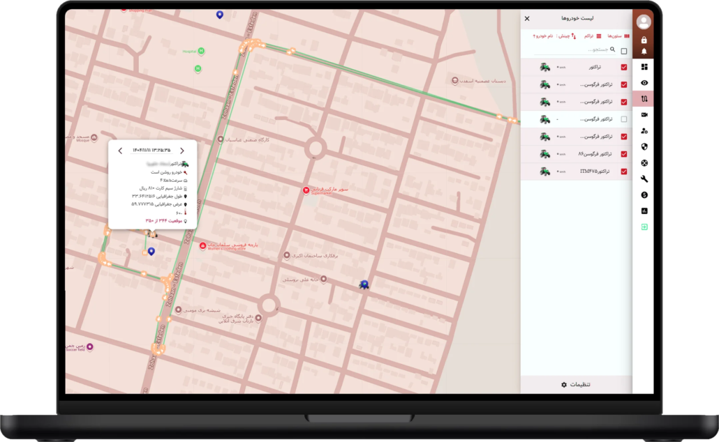 ردیابی و نمایش موقعیت لحظهای ناوگان خودرویی و عملکرد رانندگان